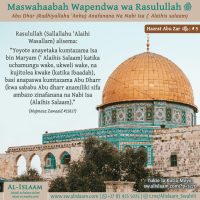 Abu Dhar (Radhiyallahu ‘Anhu) Anafanana Na Nabi Isa (‘ Alaihis salaam) Rasulullah (Sallallahu ‘Alaihi Wasallam) alisema, “Yoyote anayetaka kumtazama Isa bin Maryam (‘ Alaihis Salaam) katika uchamungu wake, ukweli wake, na kujitolea kwake (katika Ibaadah), basi anapaswa kumtazama Abu Dharr (kwa sababu Abu dharr anamiliki sifa ambazo zinafanana na Nabi …