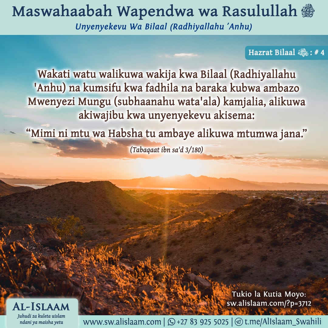 Baada ya kumuona Bilaal (Radhiyallahu ‘Anhu) akitoa Adhaan, Attaab bin Aseed alisema, “Mwenyezi Mungu amemheshimu baba yangu, Aseed, kwa kumchukua Mbali na ulimwengu huu kabla ya siku hii, na hivyo kumwokoa asisikie Adhaan ikitolewa leo! Kama angekuwa hai na kusikia adhaan hii, angekasirika sana! ”