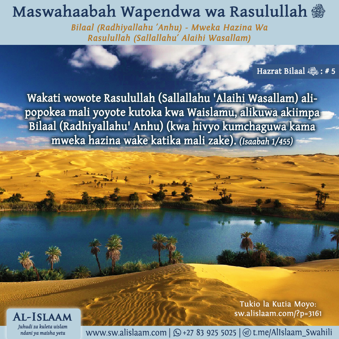 Bilaal (Radhiyallahu ‘Anhu) kisha akamwambia Abdullah al-Hawzani (Rahimahullah), “Hili ni jibu la swali lako, hivi ndivyo Rasulullah (Sallallahu ‘Alaihi Wasallam) alikuwa akitumia utajiri huo katika njia ya Allah Ta’ala. ” (Dalaa’ilun nubuwwah Lil bayhaqi 1/348)