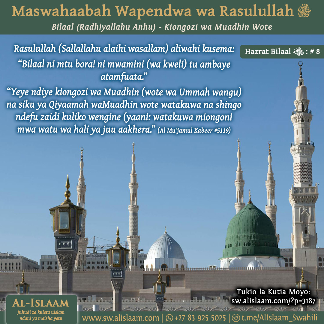 Baada ya Rasulullah (Sallallahu ‘Alaihi Wasallam) kuondoka duniani na Abu Bakr (Radhiyallahu’ Anhu) akawa Khalifah, Bilaal (Radhiyallahu ‘Anhu) alikuwa akifanya hivyo hivyo kwa Abu bakr (Radhiyallahu anhu) katika zile laidi mbili. (Siyar A’laam Nubalaa ‘3/221)