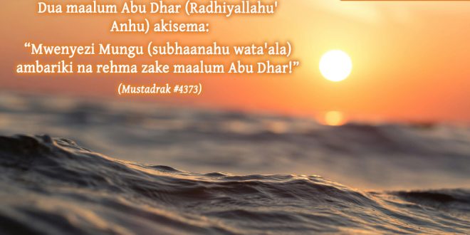 Rasulullah (Sallallahu ‘Alaihi Wasallam) kisha akamuombea Dua maalum kwa Abu dhar (Radhiyallahu’ Anhu) akisema, “Mwenyezi Mungu (subhaanahu wata’ala) ambariki na rehma zake maalum Abu dhar! Anakuja (kutuelekea sisi) akitembea peke yake, atapita peke yake na atafufuliwa peke yake.” (Siyar A’laam Min Nubalaa 3/384)