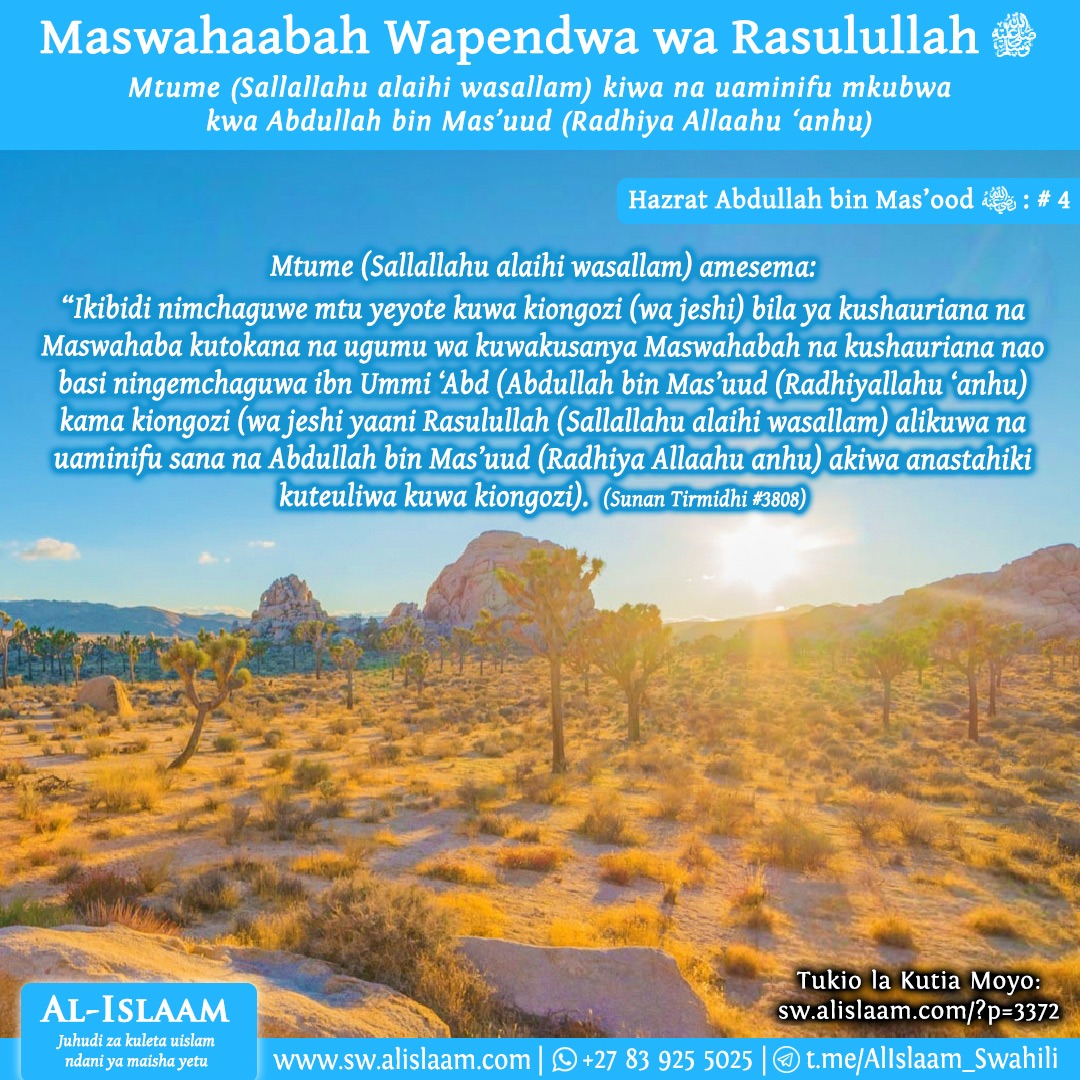 Abdullah bin Mas’uud (Radhiya Allaahu ‘anhu) anasimulia: